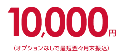 当サイト申込にて開通確認後、最短翌々月末を目処にご指定の口座へキャッシュバック10,000円をお振込みいたします。