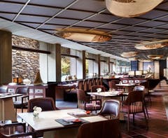 | 当店は、アマン京都の中心に位置するオールデイダイニングです。 店内は開放感あふれる空間が広がっており、床から天井まで届くガラス窓から見えるテラスの向こうには森の庭が広がります。 お料理は、京都のおばんざいから西洋風の創作料理までご用意しております。 |